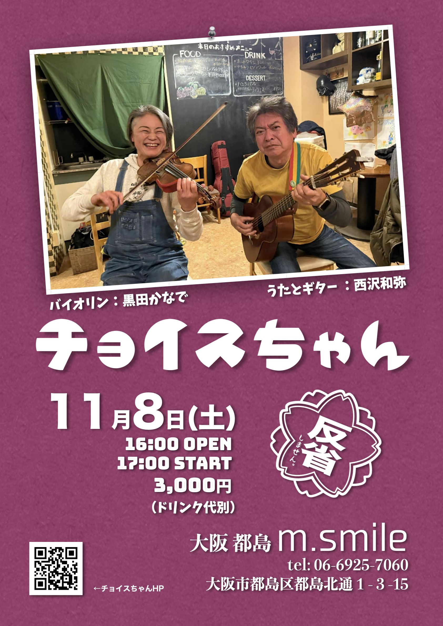 大阪市都島区都島北通1丁目3 tel: 06-6925-7060 おなじみ都島のm.smileにてチョイスちゃんです。店主まりこさんのお料理がこれまたとても美味しいのです。皆様ぜひお越しくださいませ〜♪